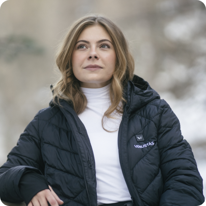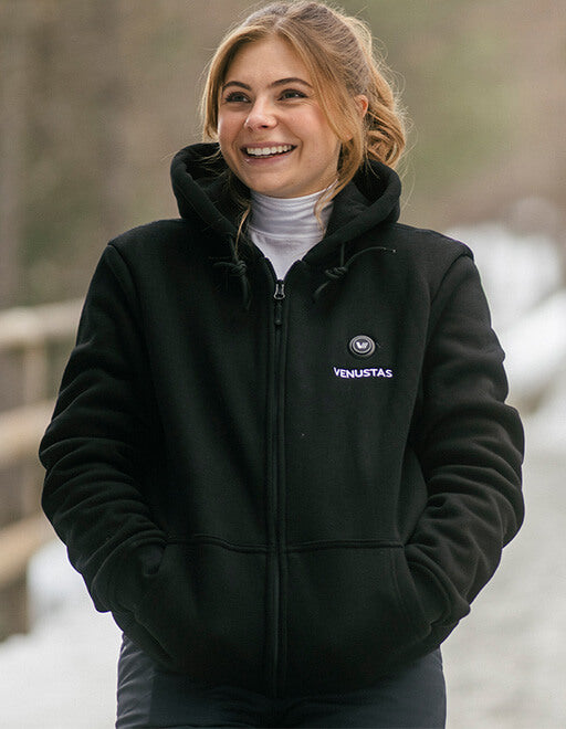 Explore Venustas-Warm™ Heating Technology, engineered to revolutionize warmth and comfort in our heated clothing. This advanced heating system features built-in carbon fiber heating elements powered by rechargeable batteries to provide unmatched warmth and comfort, even in the coldest weather. To get the most out of your heated clothing, check out our user guide.