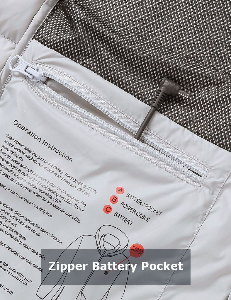 The women's heated jacket can be a perfect choice for outdoor games, walking dogs, hanging out. Battery heated jacket is lightweight and features a water-repellent finish that sheds snow and rain and of course, it’s equipped with Venustas heating system to provide a cozy feeling....